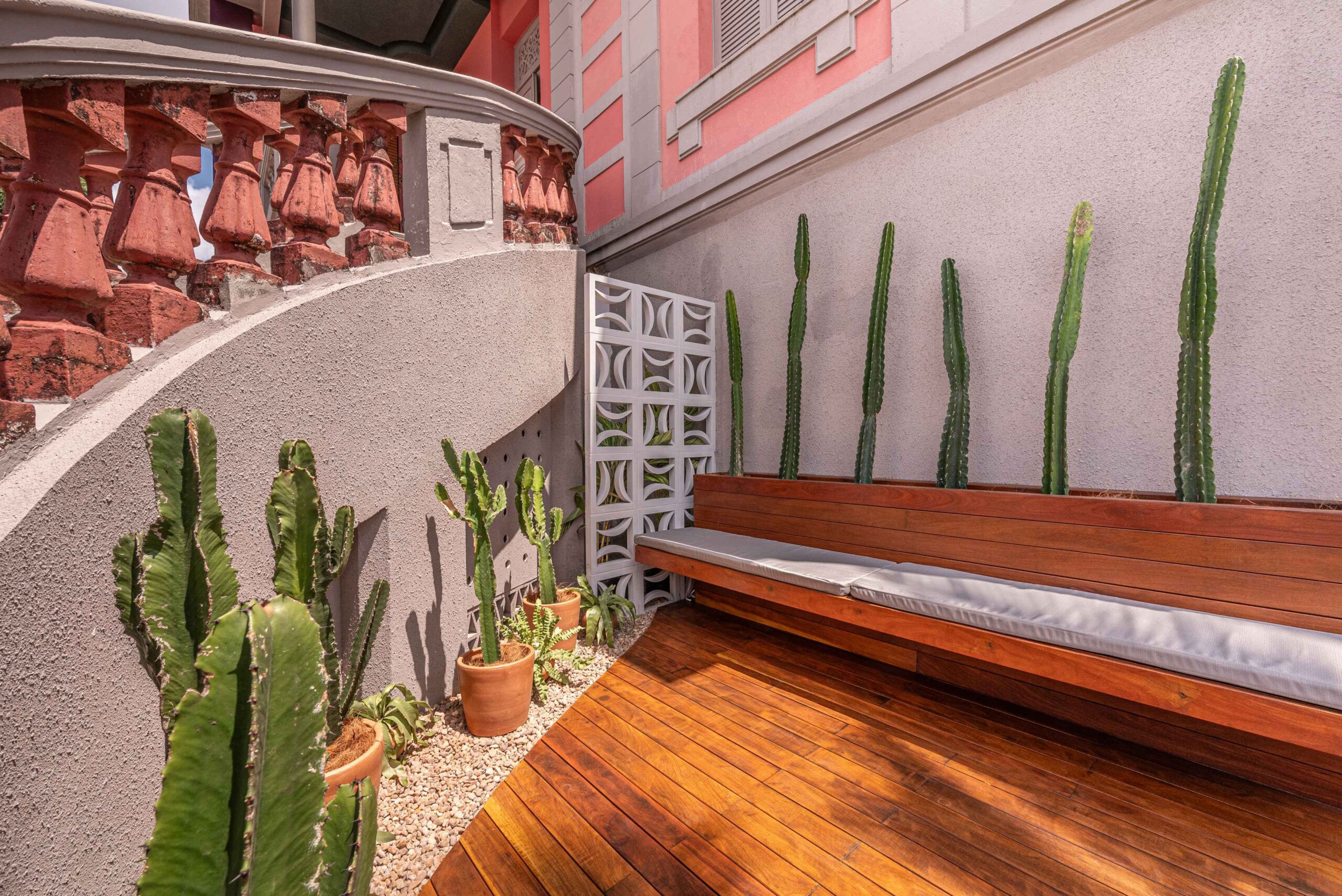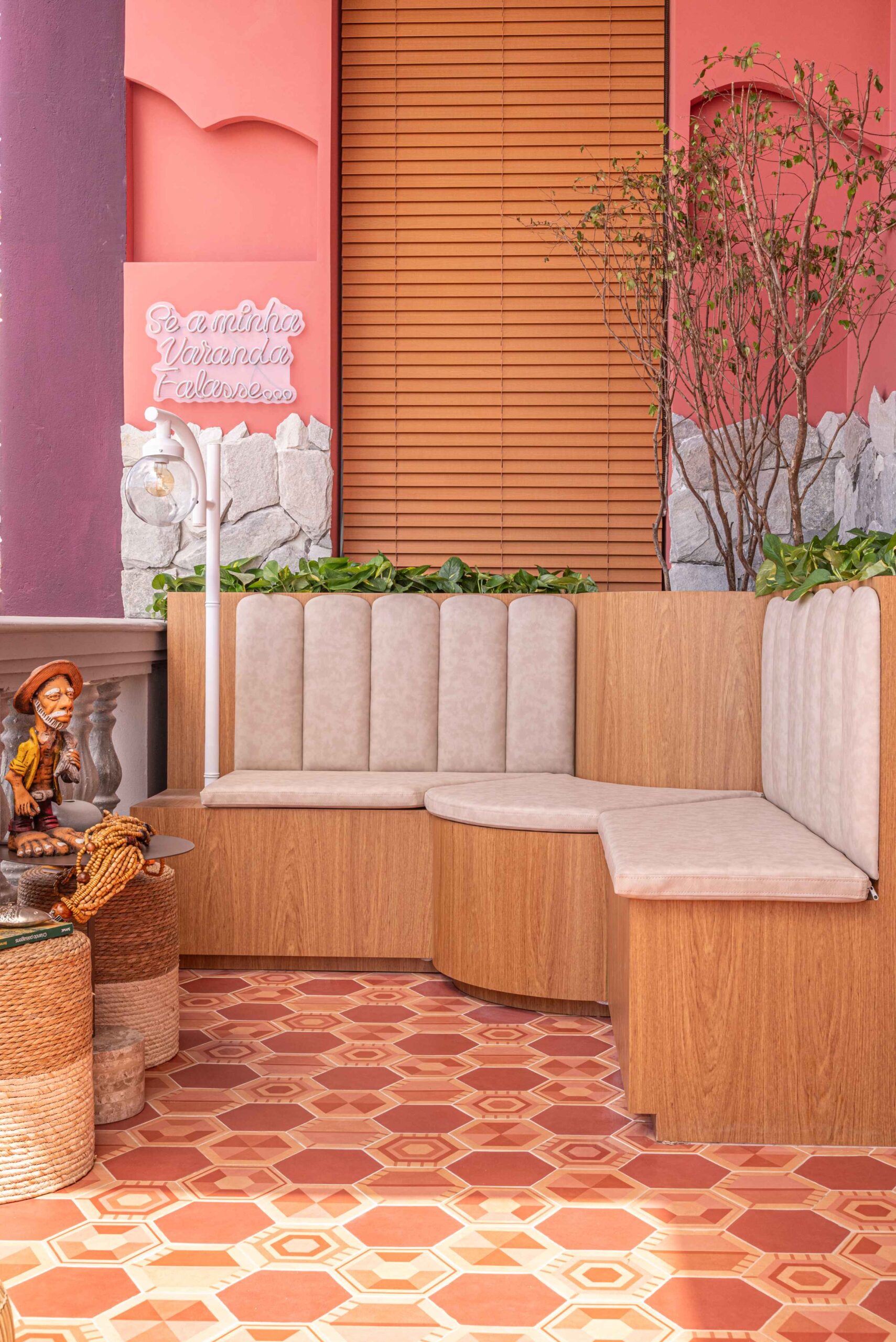 A varanda do rio foi feita para contemplar a bela vista do rio Sergipe e sentir o aconchego e acolhimento implantado em cada detalhe do ambiente. A maior inspiração foi o tempo do casarão, respeitando a história da fachada, mantendo sua cor e blindando com uma natureza nos elementos da madeira, plantas, pedras naturais, formas orgânicas, no tecido e na iluminação. O espaço deck do sentido, retrata um pouco da história da nossa região, especialmente com um espaço convidativo para sentar e partilhar uma boa conversa, em meio aos guardiões e purificadores de ambiente com os cactos.